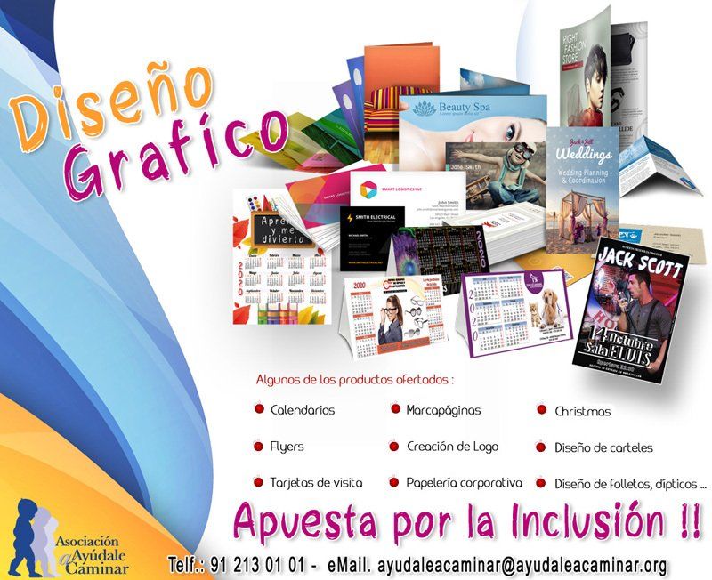 Las empresas o los particulares que lo deseen tienen la posibilidad de apoyar nuestro proyecto solicitando a nuestra entidad el diseño de todo tipo de productos personalizados, entre ellos calendarios, marcapáginas, tarjetas de visita o Christmas.